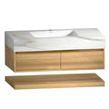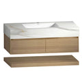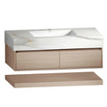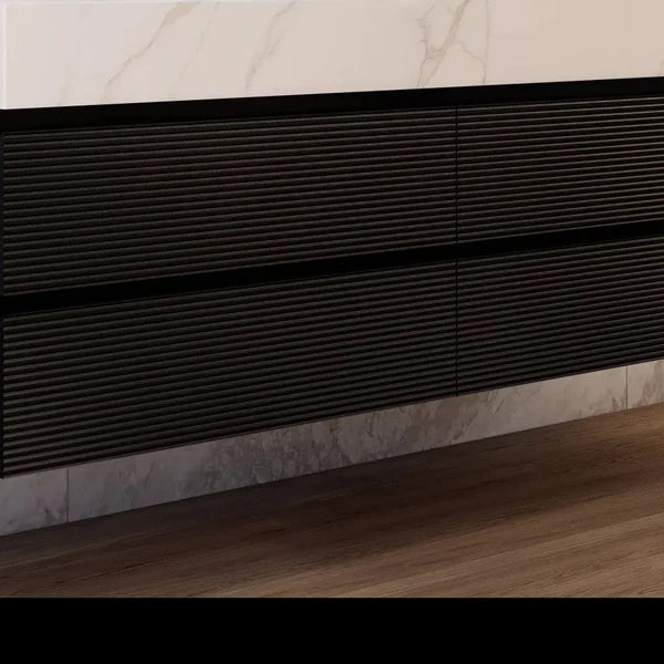 The Aventino 48" Hotel Floating Double-Sink Vanity is a 48" wall-mounted bathroom vanity built around three materials — a seamless sintered-stone top, twin integrated ceramic basin, and a your selected finish engineered wood cabinet finished with a hotel-style minimalist face. Modern proportions, pre-assembled, sized for Canadian renovations where the fit matters as much as the finish.