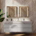 - Seamless sintered-stone top with twin integrated ceramic basins