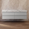The Aventino 60–71" Floating Double-Sink Vanity is a 60–71" wall-mounted bathroom vanity built around three materials — a seamless sintered-stone top, twin integrated ceramic basin, and a grey engineered wood cabinet finished with a flat-front modern face. Modern proportions, pre-assembled, sized for Canadian renovations where the fit matters as much as the finish.