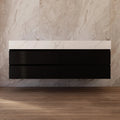 Aventino 60" Black Fluted Floating Double-Sink Vanity with Sintered Stone Top
