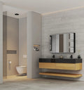 The Aventino 60" Floating Double-Sink Vanity is a 60" wall-mounted bathroom vanity built around three materials — a seamless sintered-stone top, twin integrated ceramic basin, and a natural oak plywood cabinet finished with a flat-front modern face. Modern proportions, pre-assembled, sized for Canadian renovations where the fit matters as much as the finish.