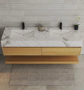 Aventino 60" Natural Oak Floating Double-Sink Vanity with Sintered Stone Top