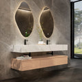 - Sintered stone top with dual integrated ceramic basins