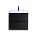 Discover the elegance of the Bliss Free Standing Modern Vanity at Home Care Supply. Crafted with wood veneer, this exquisite vanity showcases a harmonious blend of style and functionality. Its integrated European push-open hardware ensures a seamless touch and enhances the minimalist design. The reinforced acrylic composite sink has an overflow for efficient water drainage, offering both convenience and sophistication. With a single-hole faucet mount, installation becomes hassle-free. The package includes all necessary hardware, and the open-back design simplifies plumbing access.