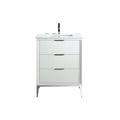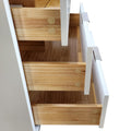 Comprehensive in its offerings, this vanity has premium features that elevate your bathroom experience. Its stainless steel legs provide stability and contemporary aesthetics, while the DTC soft-closing hardware ensures smooth and silent operation of the drawers. The pure white quartz countertop, complemented by a matching backsplash, not only radiates timeless charm but also stands up to the demands of high-moisture environments.