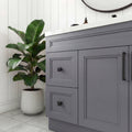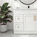The Tesoro 36" Single-Sink Shaker Solid-Wood Vanity is built to furniture standards in Ontario. Solid-wood doors and face frame in a classic Shaker profile, dovetail-joined drawers on soft-close slides, and a 2 cm engineered quartz countertop with the ceramic undermount sink already bonded in — all made in Canada, shipped in two pieces (base cabinet and pre-sunk quartz top) the way experienced installers actually prefer.