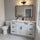 - 18″ minimum on either side of the vanity for door swing + elbow room